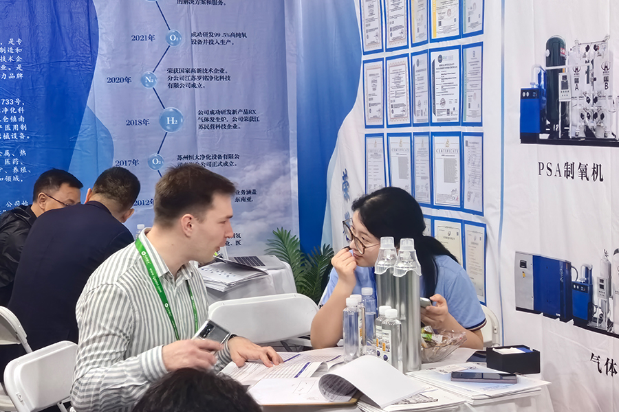 Din imaginile site -ului ON, este evident că standul nostru afișează în mod proeminent imagini ale gamei noastre diverse de echipamente, inclusiv generatoare de oxigen, generatoare de azot, generatoare de oxigen de înaltă puritate, unități de purificare a gazelor și echipamente de umplere a gazelor. În plus, sunt prezentate diverse onoruri și calificări deținute de Jiangsu Luoming. Echipa noastră dedicată de vânzări, plină de energie, își folosește cunoștințele în industrie în profunzime pentru a introduce echipamentul nostru de tăiere la clientela vizitatoare.